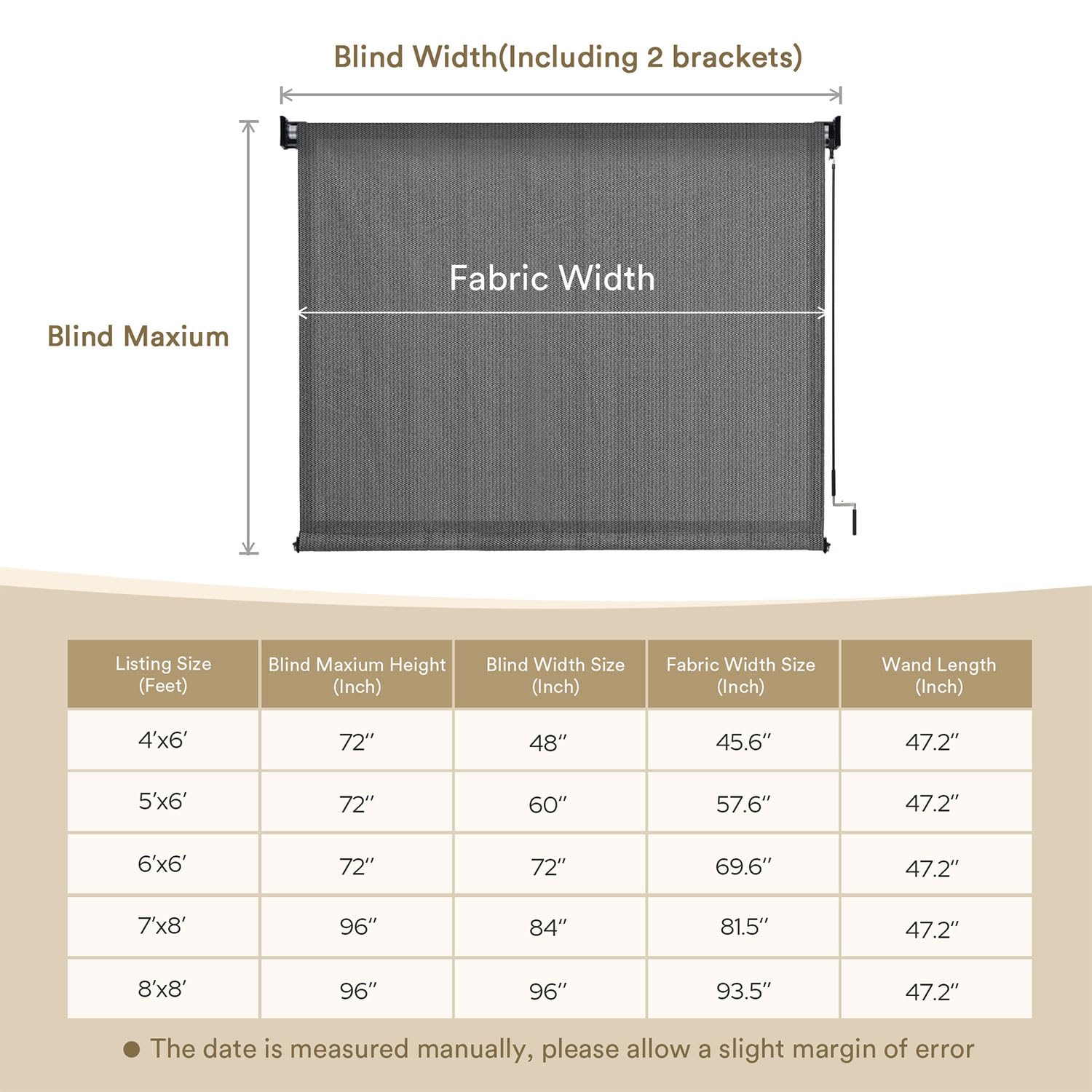 【Cordless 】Wand Crank mechanism makes it easy to adjust the height of the roller shade to control your privacy and comfort while providing a clean look and improving safety for homes with young children and pets